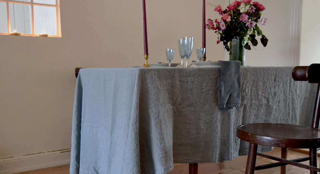 Det må ikke være for pænt. En tynd krøllede hørdug eller bordløber og hørservietter i rustik struktur vil bløde lidt op på stilen og vil bidrag til mere afslappet, men stadigvæk luksuriøs stemning.